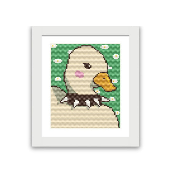 Meet the perfect blend of cute and edgy with this unique cross-stitched framed artwork featuring a cool duck with a rebellious twist. The playful contrast of cuteness and edginess makes this artwork a fun addition to any room, perfect for those who love quirky, unconventional decor.
