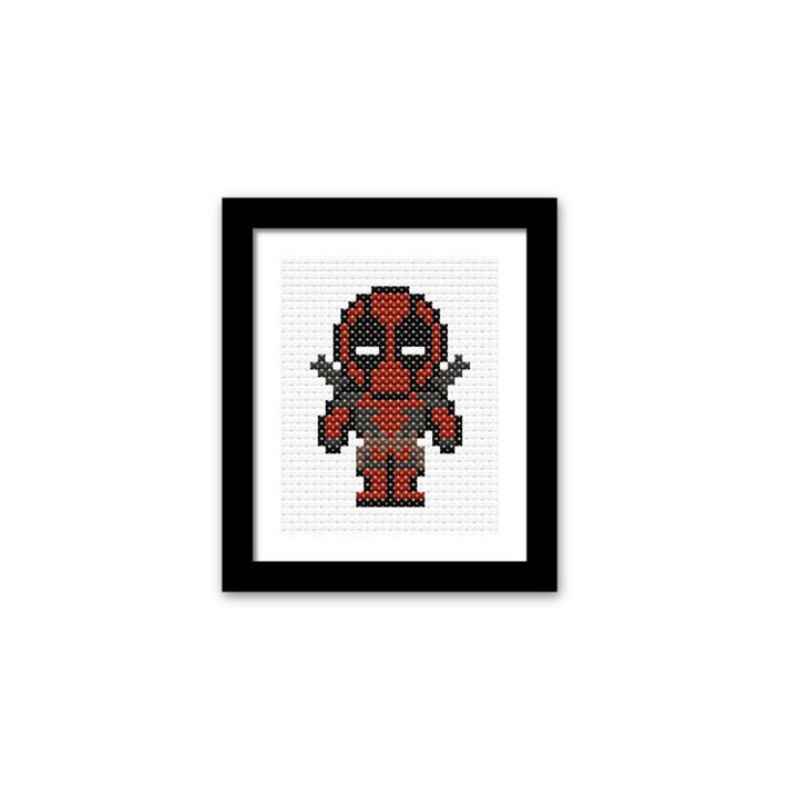 Add a splash of irreverent fun with this bold cross-stitched portrait of Deadpool. Featuring his unmistakable red-and-black mask and a smirk you can almost hear, this piece captures the essence of everyone’s favorite antihero. Framed and ready to hang, it’s a perfect piece for comic book lovers, movie buffs, or anyone with a sense of humor as sharp as Deadpool’s wit.
