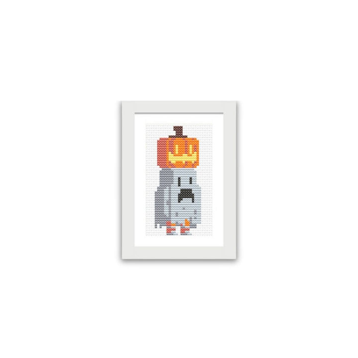 Get into the Halloween spirit with this spooky-cute cross-stitched framed artwork featuring a ghost with a pumpkin on its head. With its playful design and festive charm, this piece strikes the perfect balance between eerie and adorable — ideal for seasonal decorating or as a treat for anyone who loves a touch of ghostly whimsy.
