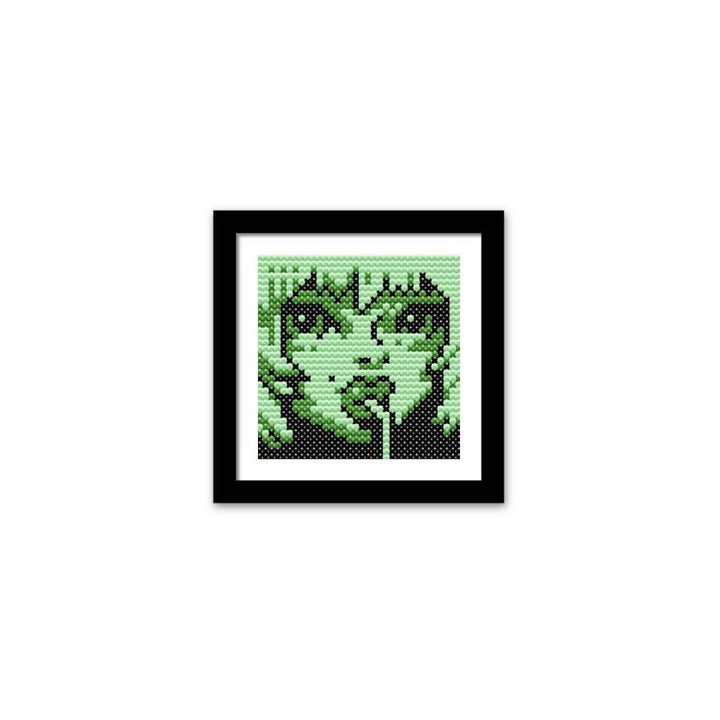 Celebrate bold color and quiet intrigue with this striking cross-stitched portrait of a green girl. With vibrant tones and a gaze full of mystery, this piece adds a modern, artistic twist to your space, making it a standout for fans of unconventional portraiture.