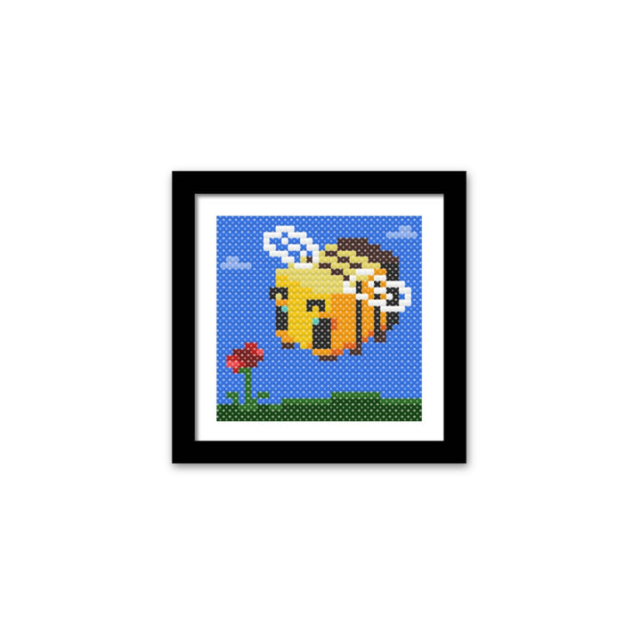 A sweet little honeybee buzzes near a bright, cartoon-style rose in this cheerful cross-stitch piece. With bold outlines and simple colors, it’s a fun and light-hearted design—perfect for adding a touch of cuteness to your space or gifting to someone who loves bees, flowers, or both!