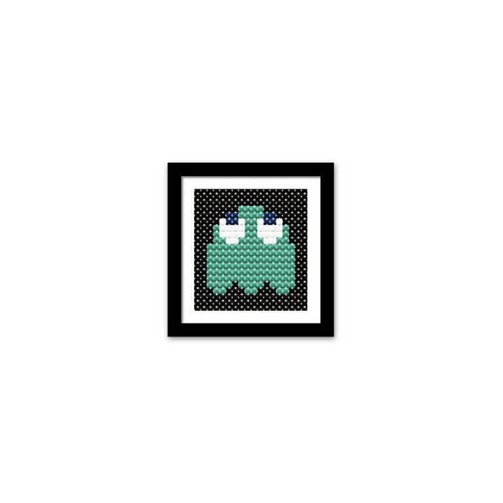Capture the essence of the classic arcade game with this cross-stitch frame of Inky, the blue ghost from Pacman. Each stitch is carefully placed to bring out the vibrant colors and playful spirit of Inky, making it a perfect piece for any retro game lover's collection. Framed in a sleek, minimalist frame, this artwork will add a touch of nostalgia and charm to your space.