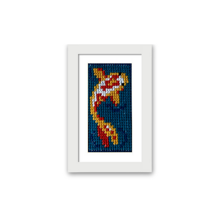 Celebrate the elegance and grace of Koi Fish with this beautifully crafted cross-stitched framed artwork. The design showcases the flowing movement and vibrant colors of koi fish, symbolizing perseverance and good fortune. This artwork is perfect for adding a touch of tranquility and harmony to your home.