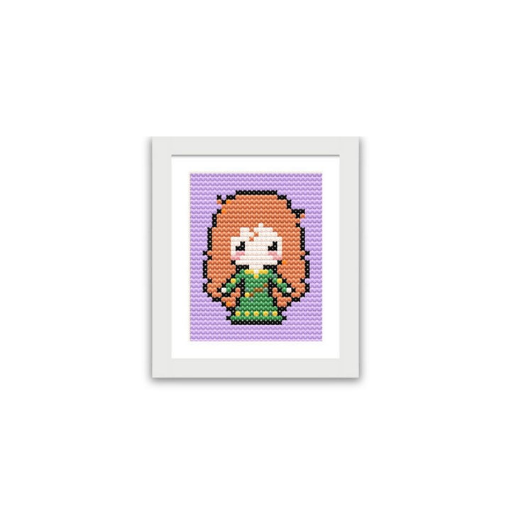 Bring the bold spirit of Merida to life with this cross-stitched artwork. Featuring her iconic fiery hair and bow, this piece embodies courage and determination, perfect for any space seeking a touch of adventure.
