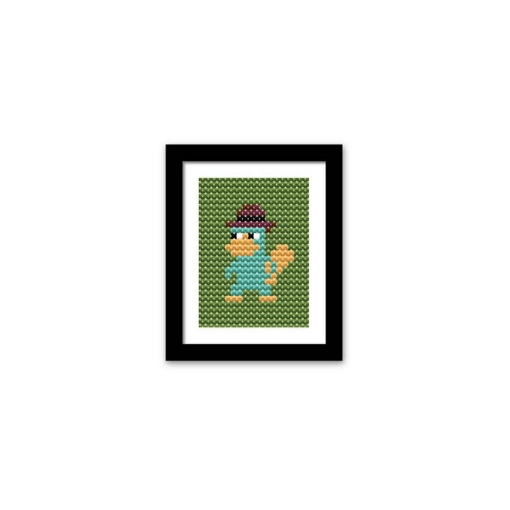Add some quirky charm to your decor with this cross-stitched artwork of Perry the Platypus from Phineas and Ferb. This piece perfectly captures his secret agent persona and playful spirit.