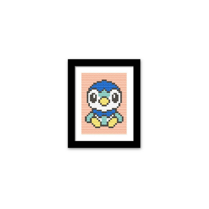 Bring the charm of Piplup to life with this adorable cross-stitched piece. Showcasing its cheerful expression and playful nature, it’s a delightful addition for any Pokémon enthusiast.