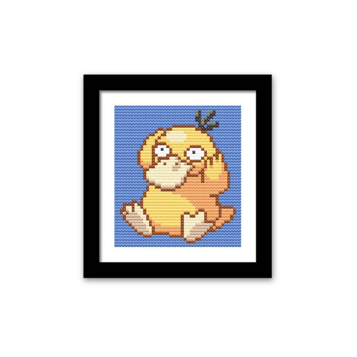 Embrace the charming confusion of everyone's favorite water-type Pokémon with this Psyduck cross-stitched framed artwork. The design captures Psyduck’s signature puzzled expression and adorable stance, making it a delightful piece for any Pokémon fan. This artwork is ideal for adding a touch of playful nostalgia to your space or as a thoughtful gift for a fellow Pokémon enthusiast who can relate to Psyduck’s constant state of wonder.