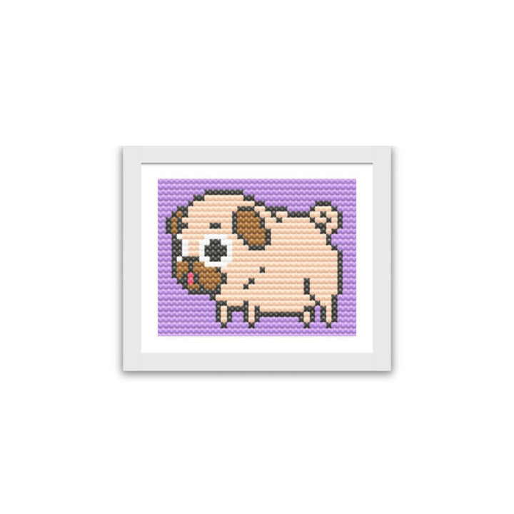 Celebrate the lovable charm of a pug with this adorable cross-stitched framed artwork. Perfect for dog lovers and pug enthusiasts, this artwork adds a touch of warmth and cuteness to any room. This piece makes a wonderful addition to your home decor or a thoughtful gift for someone who adores pugs.