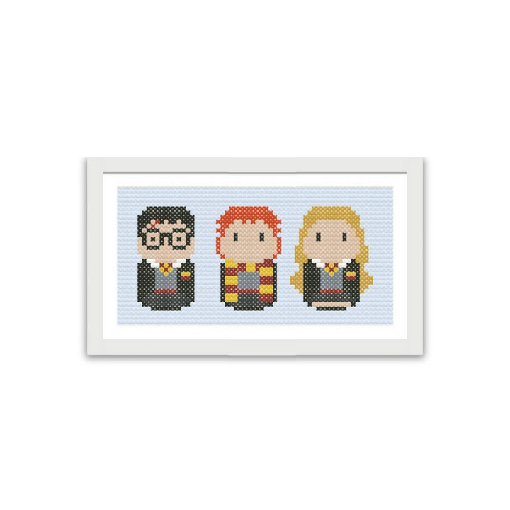 Wands, scarves, and stitched magic—The Hogwarts Three are ready for class. A cozy embroidered tribute to Harry, Hermione, and Ron in their iconic school days.