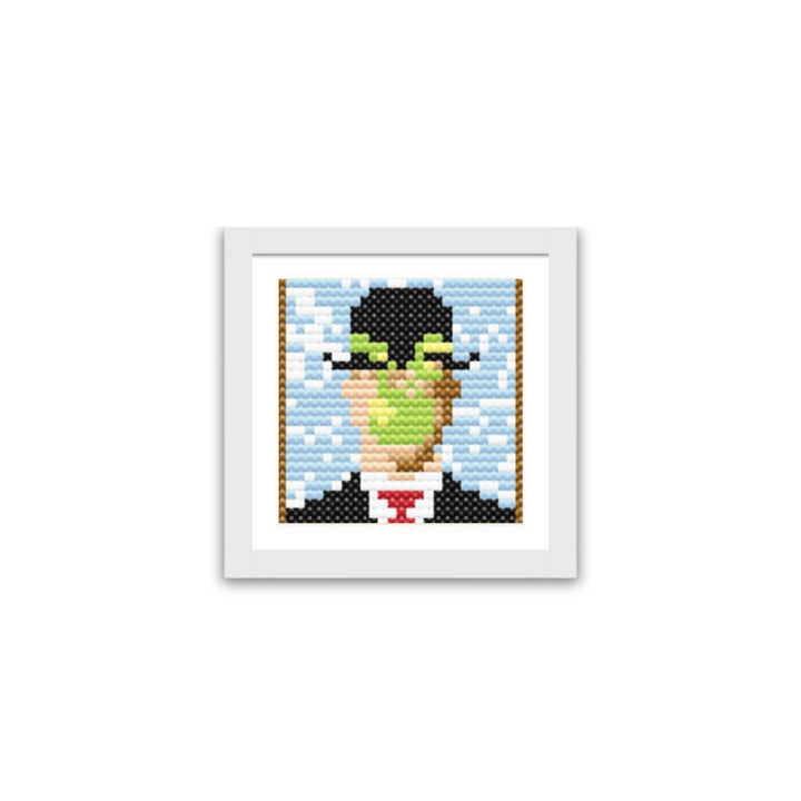 Bring a touch of surreal elegance to your space with this cross-stitched rendition of The Son of Man. Inspired by Magritte's iconic masterpiece, this artwork captures the mystery and sophistication of the timeless classic, making it a thought-provoking addition to any decor.