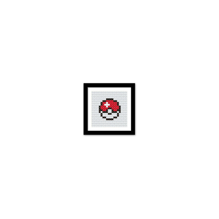 Channel your inner trainer with this bold and nostalgic cross-stitched Pokéball. Clean lines and vibrant colors make this a striking piece for any Pokémon fan, whether you're building a themed gallery wall or looking for a fun gift. It’s a simple symbol of countless adventures, now in perfectly placed stitches.